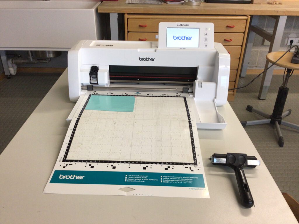 Sie plotten, bedrucken Sachen, gestalten Schlüsselanhänger und machen ein Design mit Stoff.