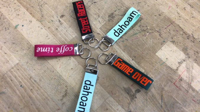 Mit dem Plotter hergestellte Schlüsselanhänger (eigenes Foto der Redaktion)