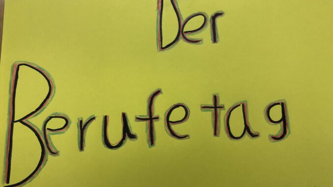 Ich war als erstes bei der Apotheke, dann bei der Polizei und als nächstes war ich noch bei der Kinderpflege. Es gab aber auch noch Infostände zu den Berufen Elektrotechnik, Klimatechnik, Altenpflege und Bauwesen. Die verschiedenen Referenten haben uns in drei Runden Sachen erklärt z.B. wie die Ausbildung abläuft, wie viel Geld man verdient und welchen Schulabschluss man braucht. Am Ende durften wir noch Fragen stellen und haben kleine Geschenke bekommen. Das kam natürlich besonders gut an 😊.