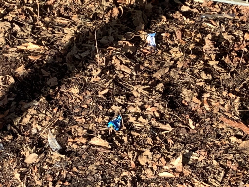 Eigentlich auf dem ganzen Hof und auch ganz viel neben den Mülleimern.