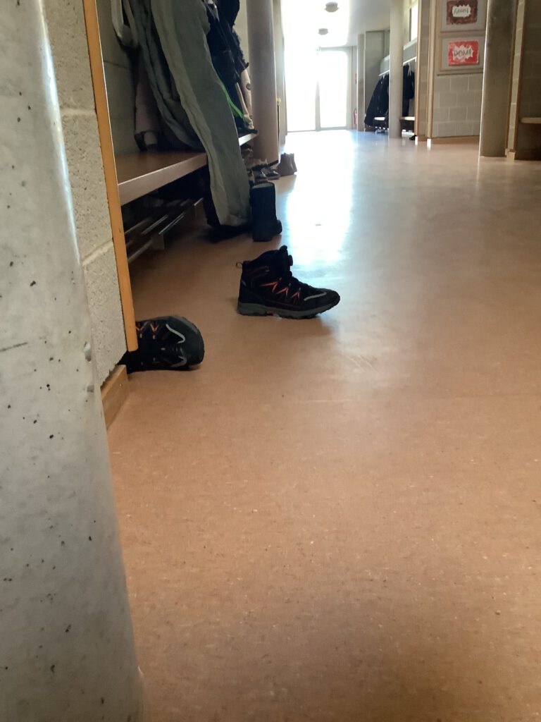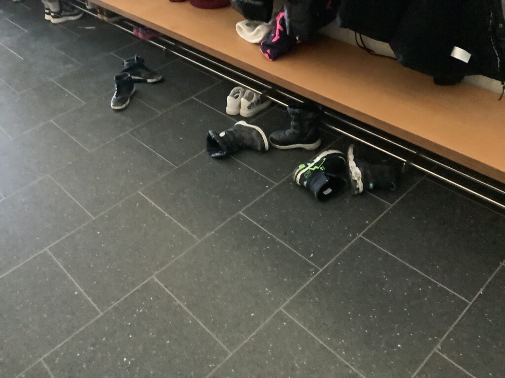 Ganz viele haben keine Hausschuhe an, Schuhe liegen überall rum und nicht auf ihrem Platz, Müll wird nicht getrennt, sondern alles wird in den Restmüll geschmissen.