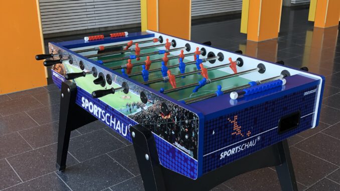 In der Schulaula waren drei Kicker aufgestellt für das Kickerturnier.